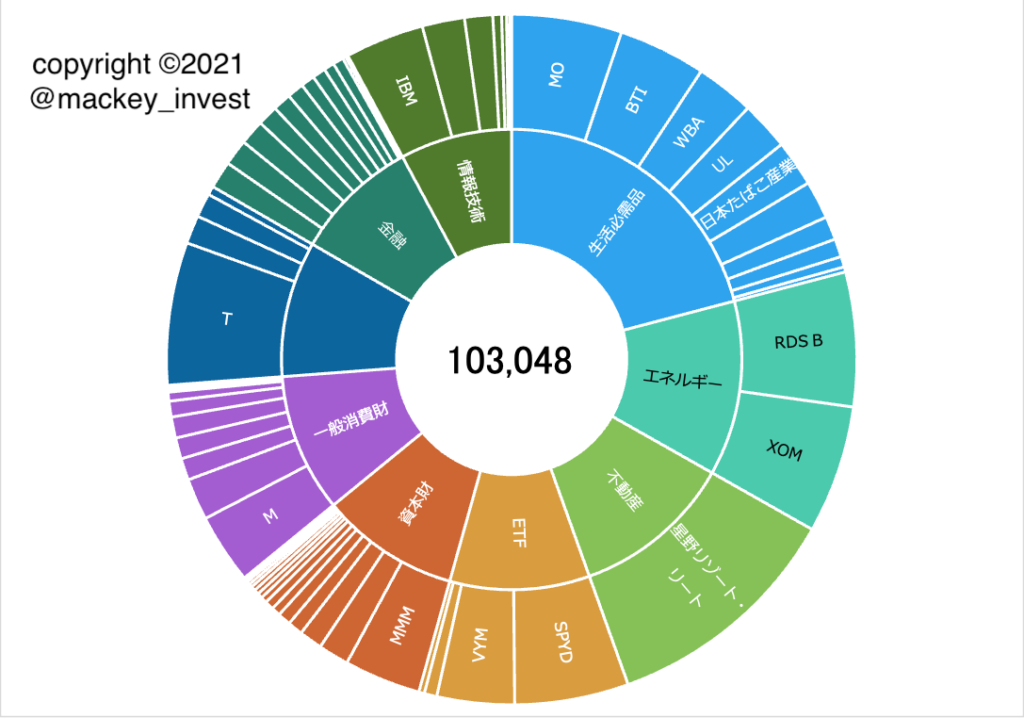 日本株は、相対的に信用できる銘柄が少なく、すぐ減配してしまう傾向にありますので、あまり大きく資金を投入できずにいます。そのため、銘柄数がとんでもないことに・・・まあ、いいでしょう。