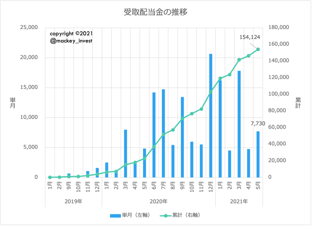 2021年5月までの累計受取配当金は、 154,124円となりました!